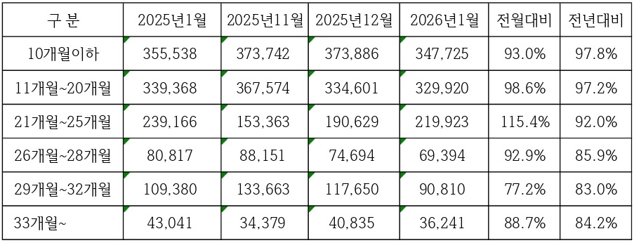 (표-4) 한우 거세우 생후 월령별 사육 두수 (단위: 두)  자료) 축산물품질평가원 축산유통 통계누리주) 기준일: 매월 말일